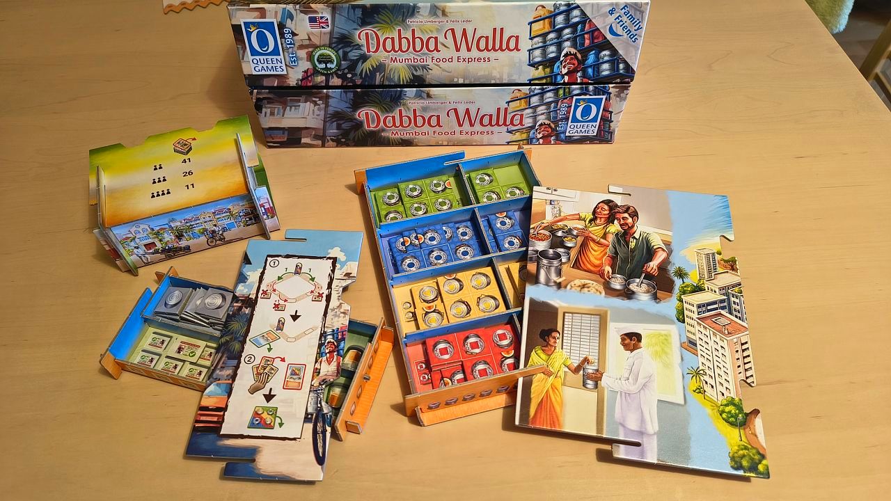 Tak všem kurýrům šťastnou cestu bez nehod a klientům dobrou chuť, tedy „Apane bhojan, ka Aanand len“! Produkty německého vydavatelství Queen Games, snad až na kolekci měst City Collection, obyčejně nepatří mezi hodnotné či luxusní deskovky, protože jim chybí insert, komponenty jsou standardizované a obyčejné, stejně jako používají nepříliš pohlednou grafiku a tenčí karton vylamovacích desek. Daba Walla – Mumbai Food Express je tak trochu premiantem, protože úplně všechny komponenty pojmou vtipně vyřešené a bohatě ilustrované krabičky, jež se do krabice přesně zarovnají. Víka těchto krabiček tvoří desky herního plánu, případně destičky nápovědy a přehledu hry, což považuji za velmi praktický a vtipný systém.